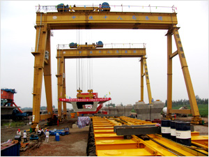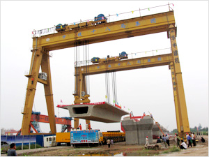 2006年10月15日我公司生产MG450型门式起重机在中铁十八局天津城际轨道工地进行了架梁仪式