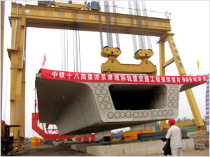 我公司生产MG450型门式起重机在中铁十八局天津城际轨道工地进行了架梁仪式