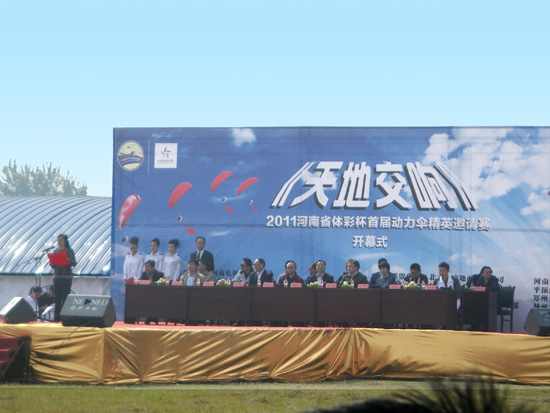 2011年10月3日河南省首届动力伞精英邀请赛开幕式在位于上街区航空管理中心正式开幕,主办单位有河南省体育局、河南省电视台民生频道、东方今报、河南省航空运动管理中心、郑州市上街区人民政府、河南大宇国际飞行俱乐部。