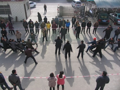 2012年12月31日,华中建机为丰富职工节日文化生活,喜迎新年,举办“庆元旦、迎新春”为主题的趣味新年活动。猜谜、四人六足、乒乓球、跳绳、拔河等丰富多彩的活动,公司工会给参加人员发放热水壶、毛巾、洗衣液等奖品,既提高了员工新年工作热情,又丰富企业文化建设。
