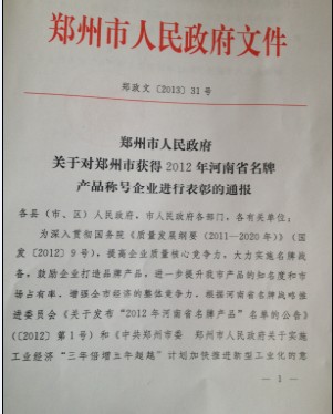 近几日,根据河南省名牌战略推进委员会《河南省名牌产品管理办法》的有关要求,对“2012年河南省名牌产品”申报产品进行了审查认定,授予郑州市华中建机有限公司的HZQ架桥机为“2012年河南省名牌产品”称号。