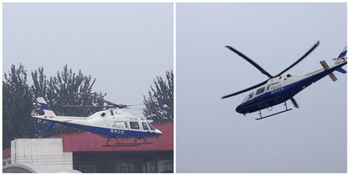 为维持航展秩序郑州公安派出直升机在空中盘旋。