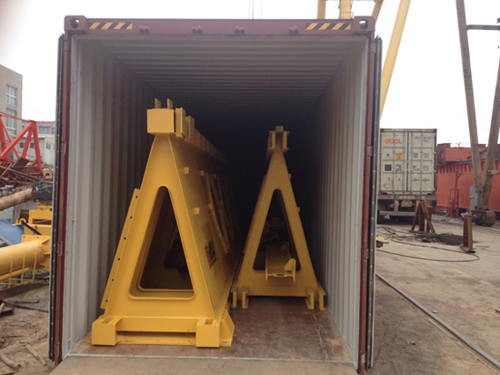 该门式起重机由我公司自行研制开发,是国内首创等腰三角形蜂窝式主纵梁(专利产品),具有自重轻,刚度大、挠度小,抗风性能强;独特的钢销连接,不但牢固可靠而且设备拼时间短,也因为一直倍受客户的青睐,该设备广泛应用于调整公路建设及港口码头和铁路货场。紧迫的工期没有影响此次任务的顺利完成,从图纸设计、功能开发,到加工制造、组织发货,都凝聚了华中建机全体技术人员和车间工人的心血和汗水,是对华中建机技术实力和加工能力的一次全面检验,同时也为华中建机进一步开拓国际市场积累了有益的经验。