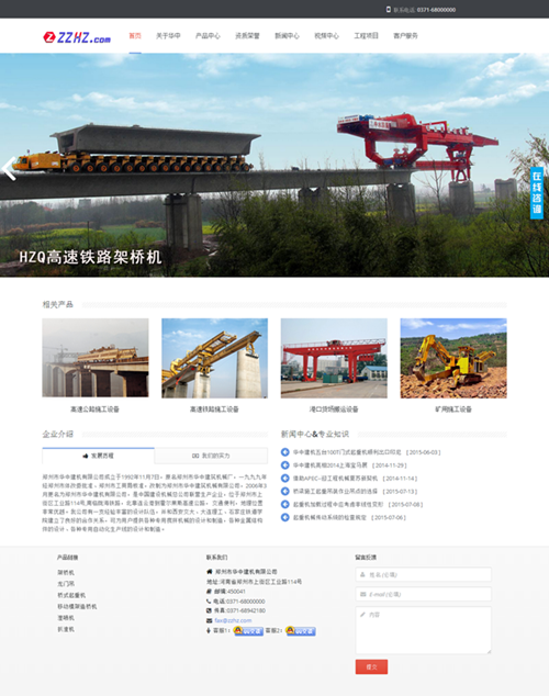 华中建机网站www.zzhz.com全新改版,于近日正式上线运行了。本着以人为本的思想理念,这次改版后的网站,内容更加丰富,与客户的浏览习惯完美契合,主要具有以下特点: