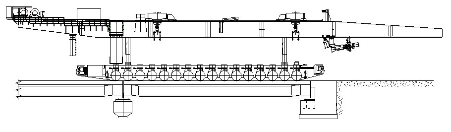 HZQ900架桥机是郑州市华中建机有限公司针对客运专线(高速铁路)900t混凝土箱梁的架设而研制开发的具有独立自主知识产权的导梁式大型桥梁施工设备,该设备能满足不同跨度梁(32m、24m、20m等)的架设和曲线桥梁(曲线半径R≥600m)的施工要求;其配备有低位驮运转场支撑架,所以经过简单折叠拆卸后在运粱车的辅助驮运下能方便通过提篮拱、叠桥、隧道等限界建筑。