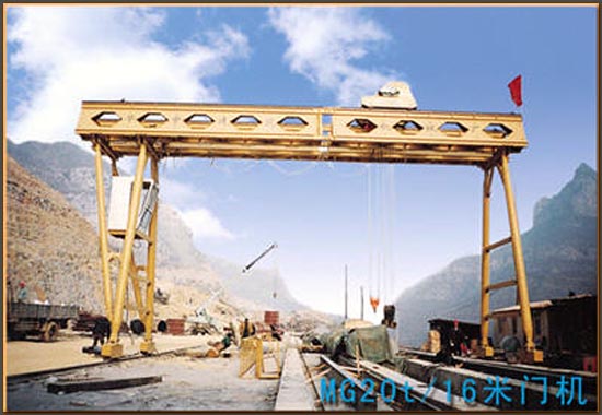 华中建机生产的门式起重机主梁采用等腰三角形蜂窝式主纵梁,已申请获得国家专利,此结构具有自重轻,刚度大、挠度小,抗风能利强等优点。这种主纵梁的设计保留了箱梁的两侧承重钢板,把上边和下边非承重钢板去掉,上边直接焊接在一起,下边用槽钢代替,设计成为三角形蜂窝梁结构。既保留了箱梁的优点,又克服了箱梁过于笨重的缺点。